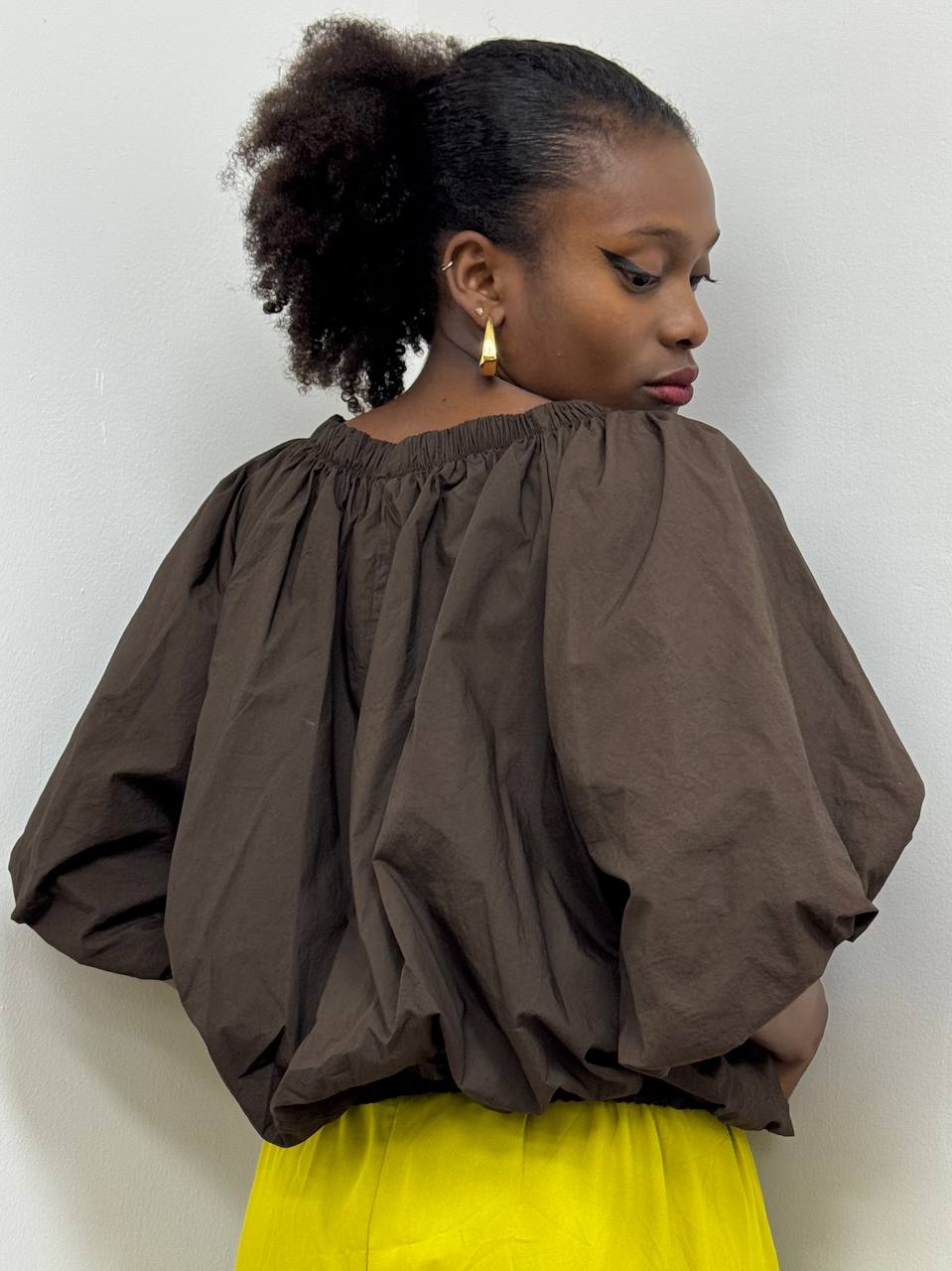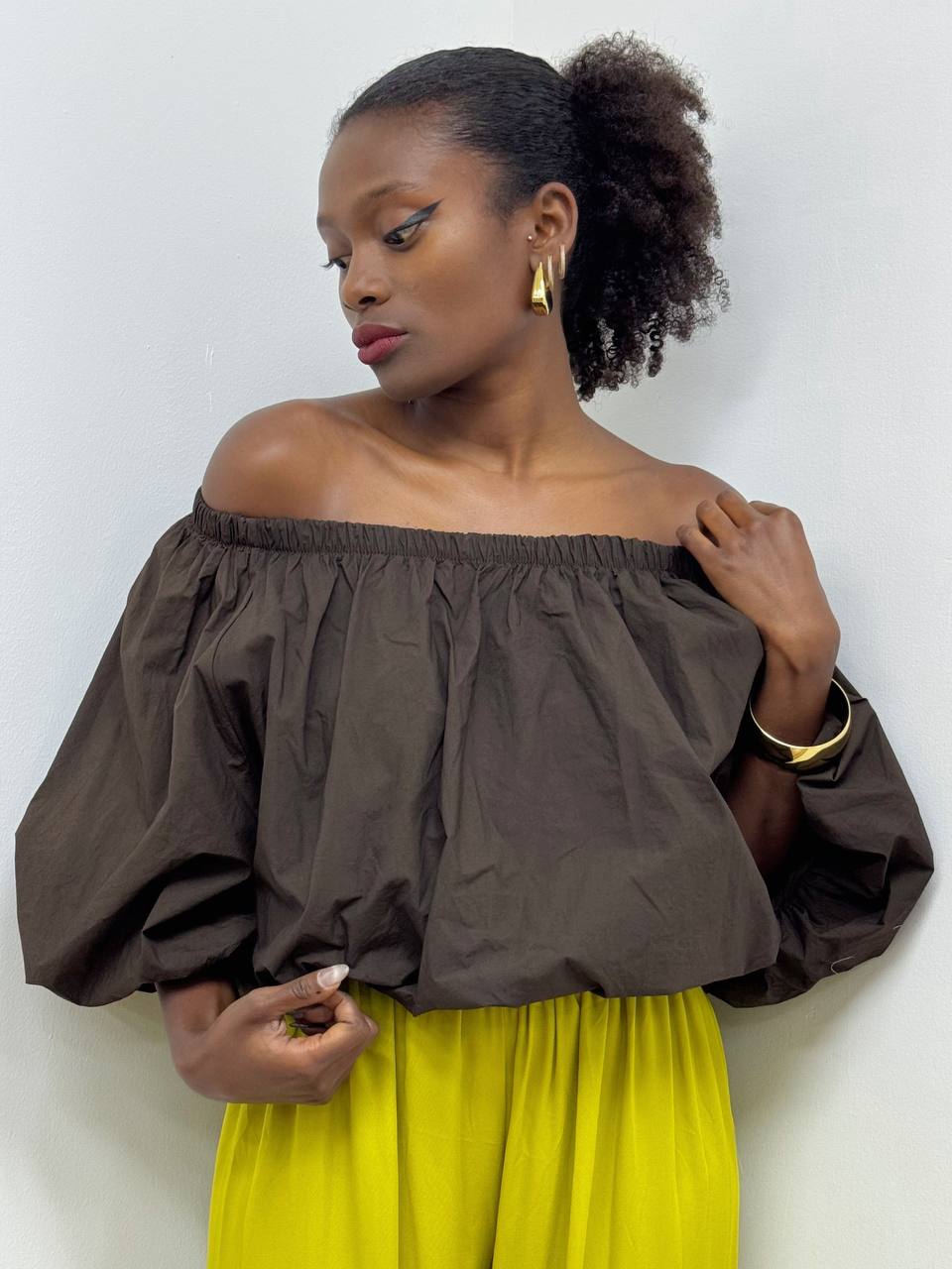 TOP MONGOLFIERA OFF SHOULDER CIOCCOLATO