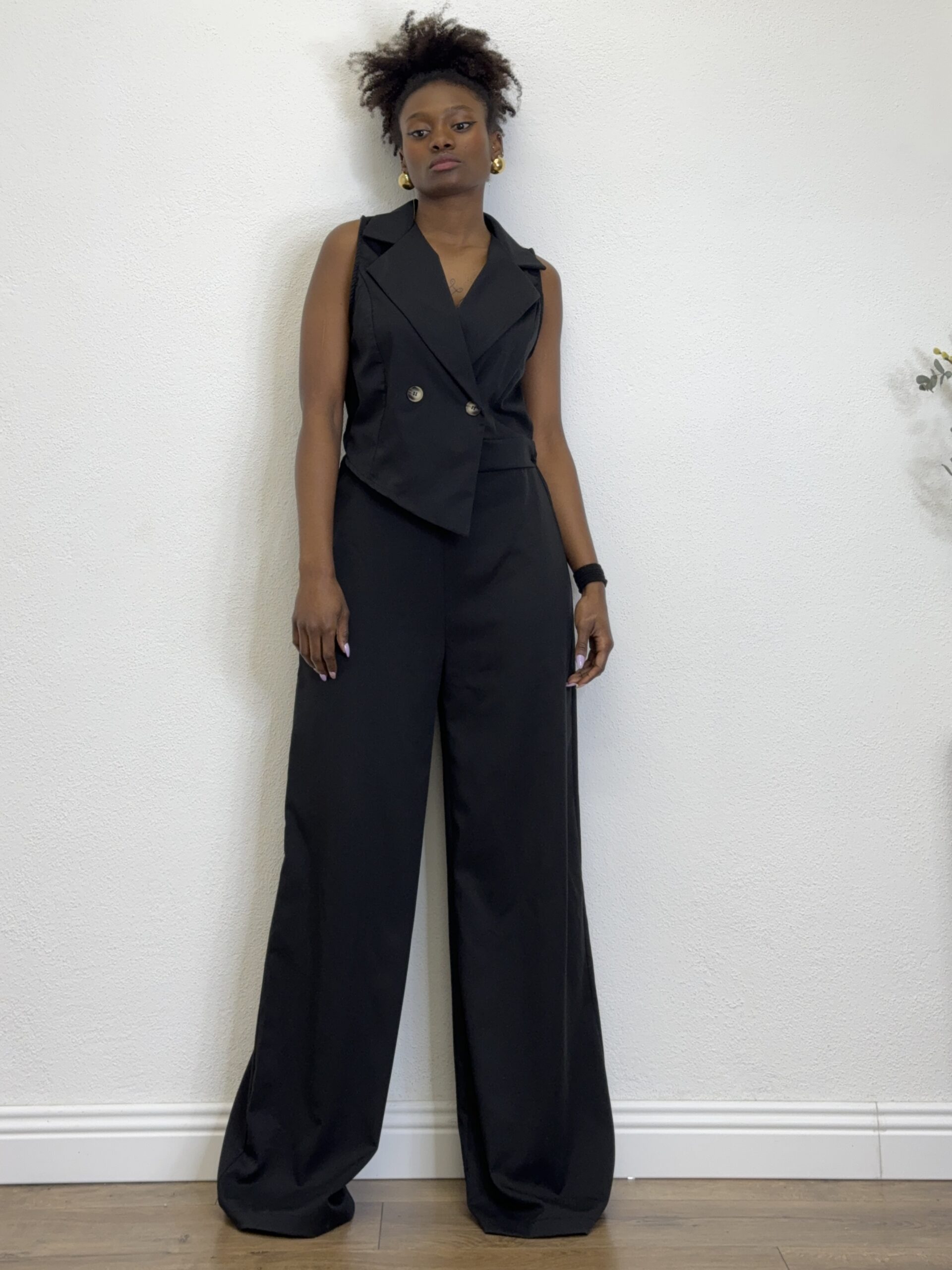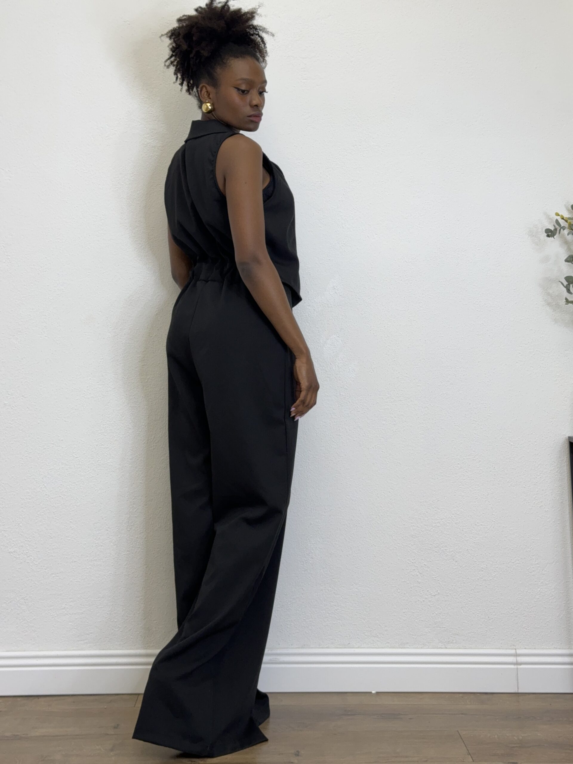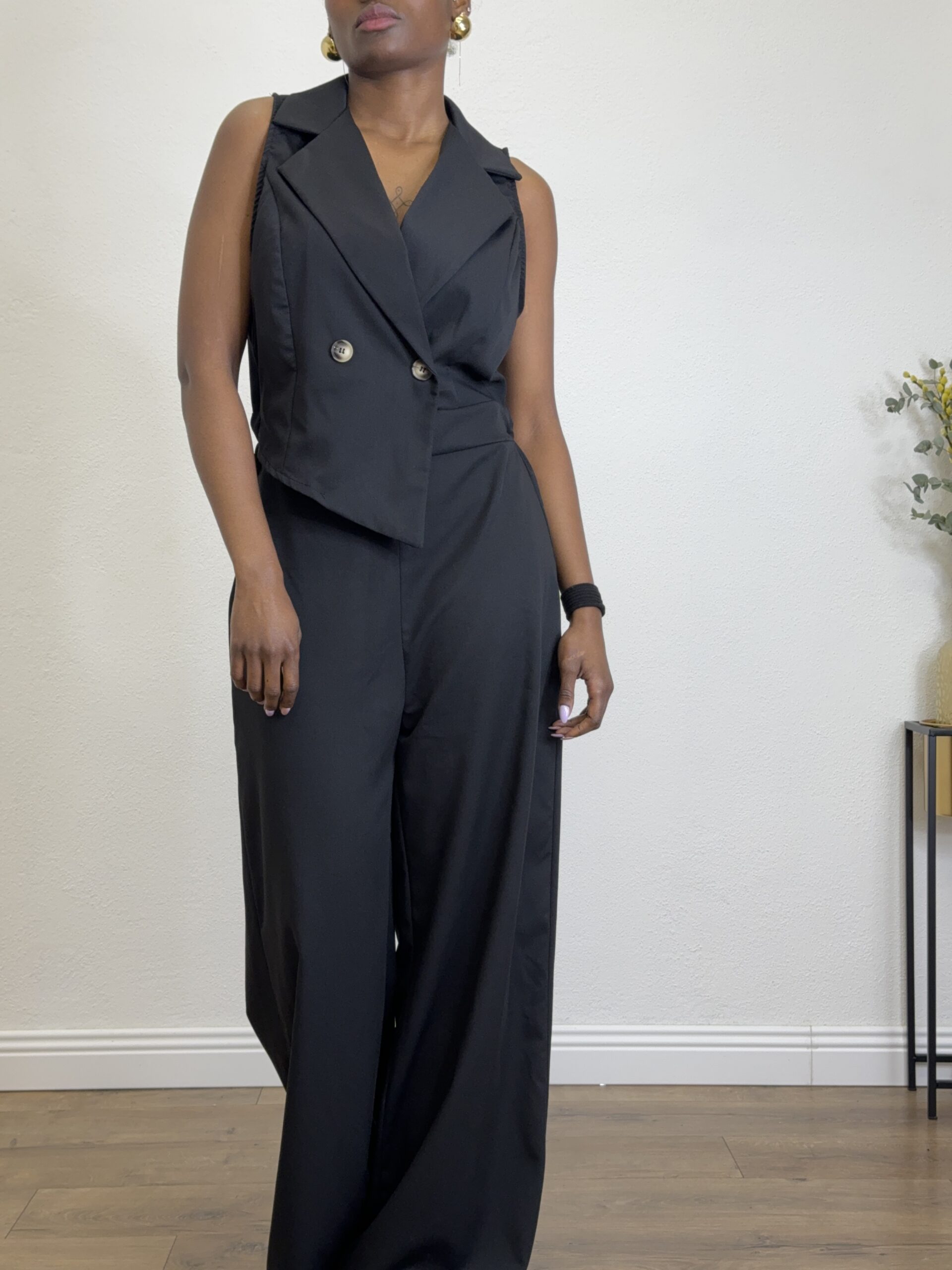 Tuta con dettaglio di camicia sulla parte alta a tinta unita .
