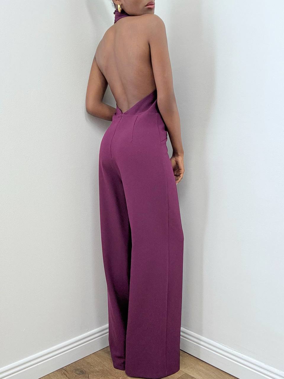 Tuta elegante e femminile dal design sofisticato, caratterizzata da scollo all’americana che valorizza le spalle e dona slancio alla figura. Il profondo scollo a V sul davanti esalta il décolleté con sensualità, mentre la schiena completamente scoperta aggiunge un tocco audace e raffinato.