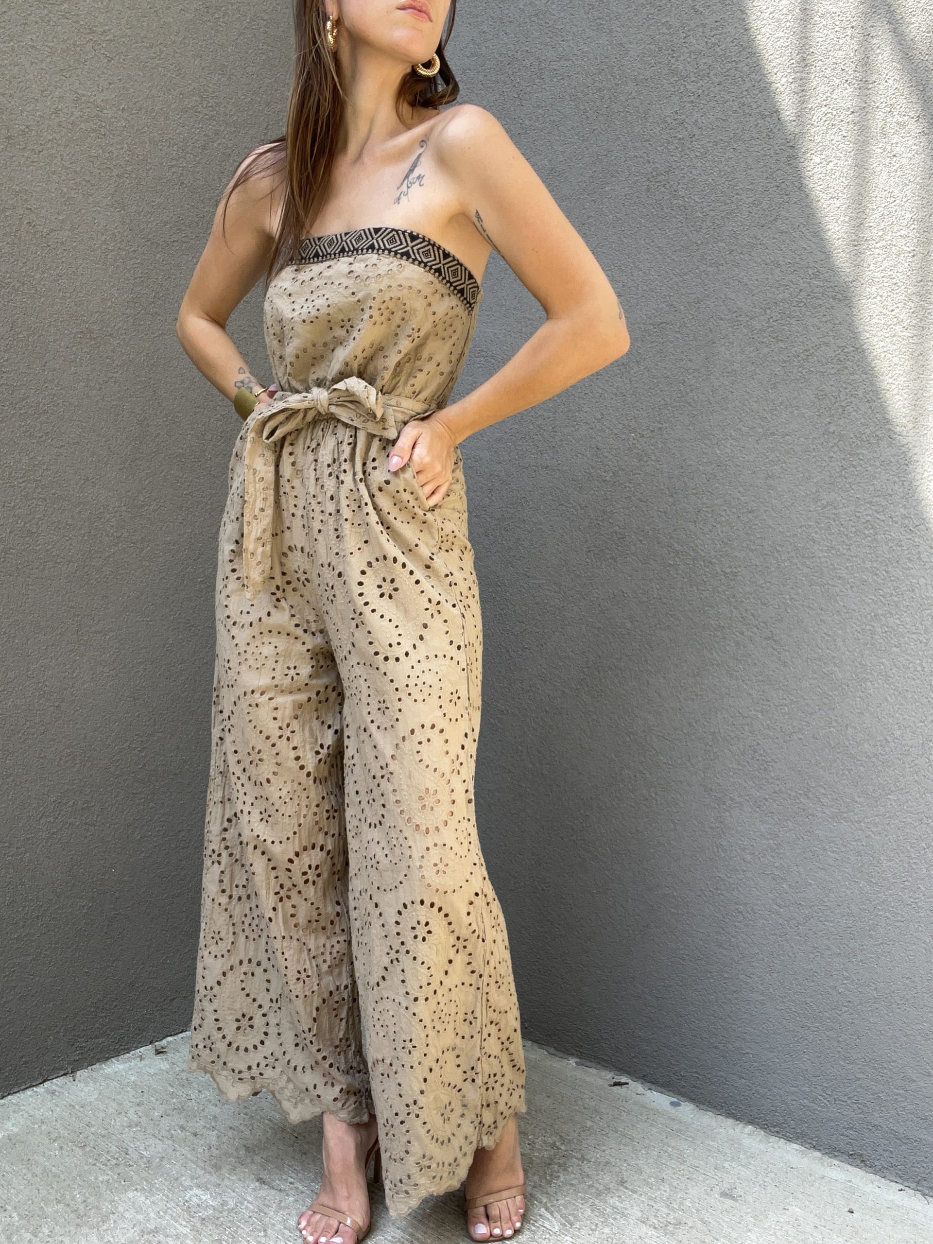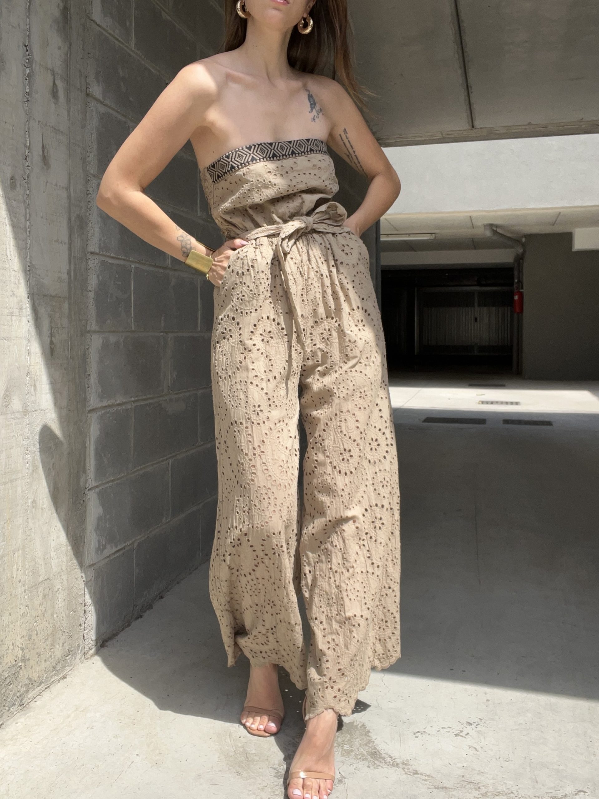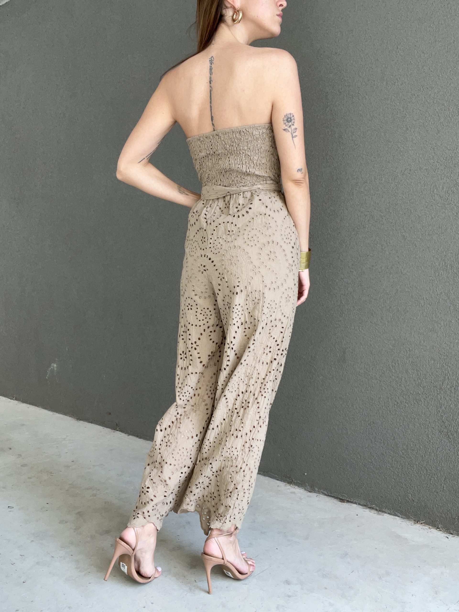 Tuta in macrame con elastico in vita. Veste fino a taglia 44/46.