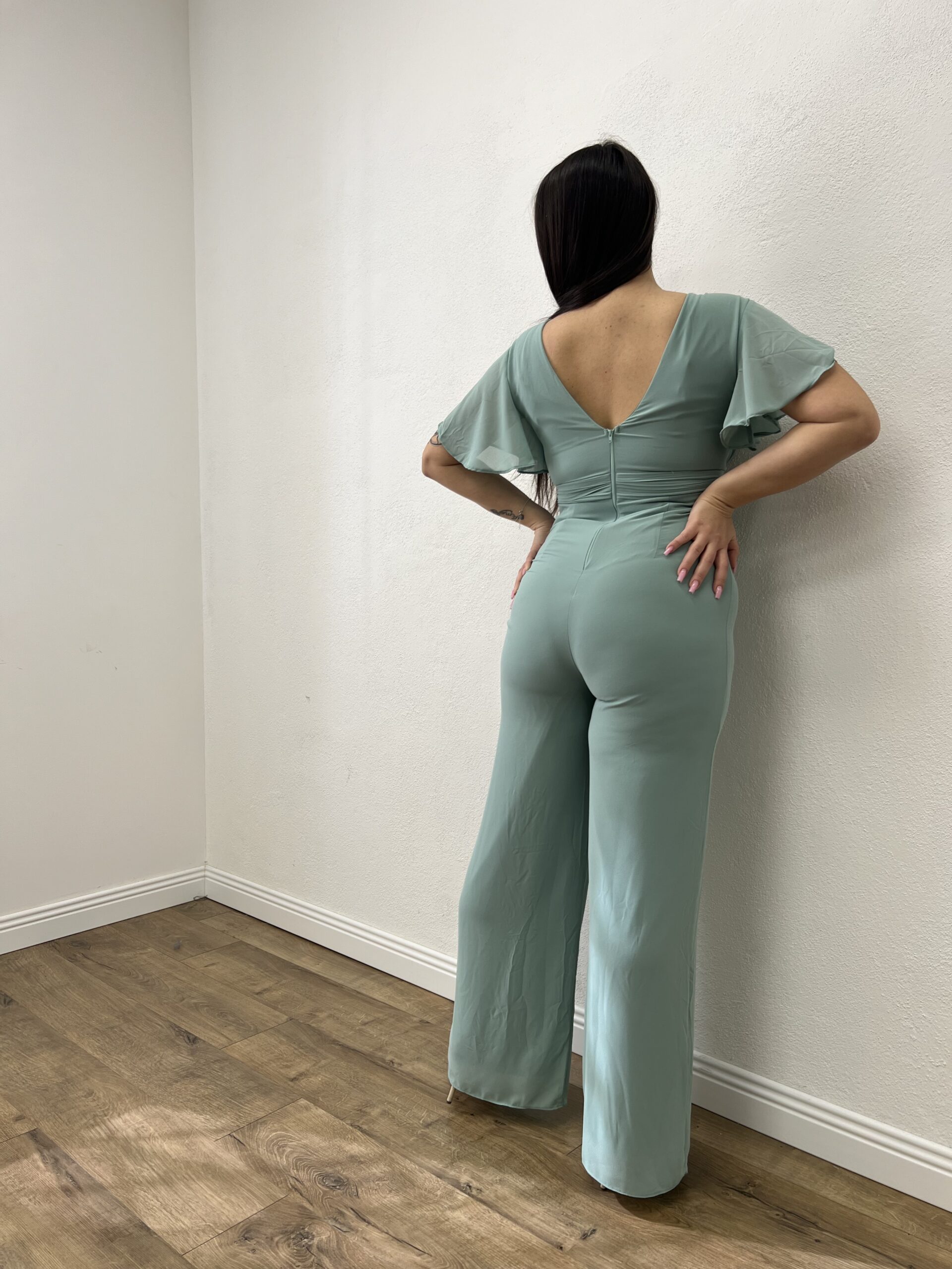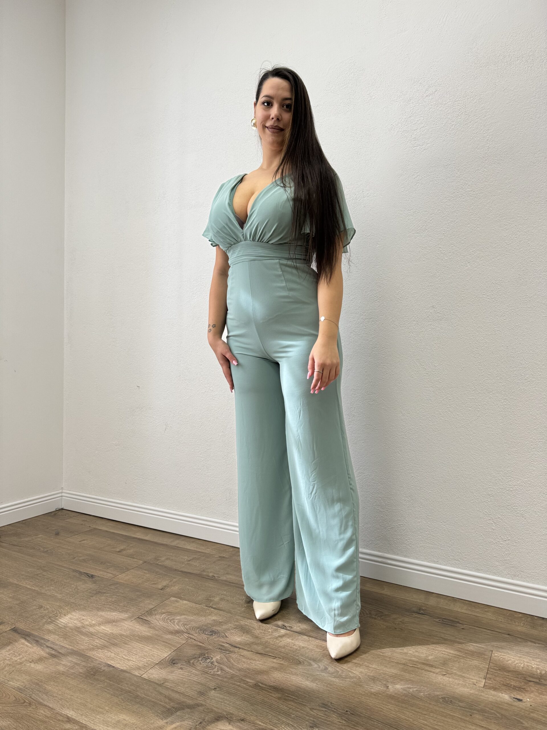 Tuta con scollo a V a tinta unita con coppe preformate.