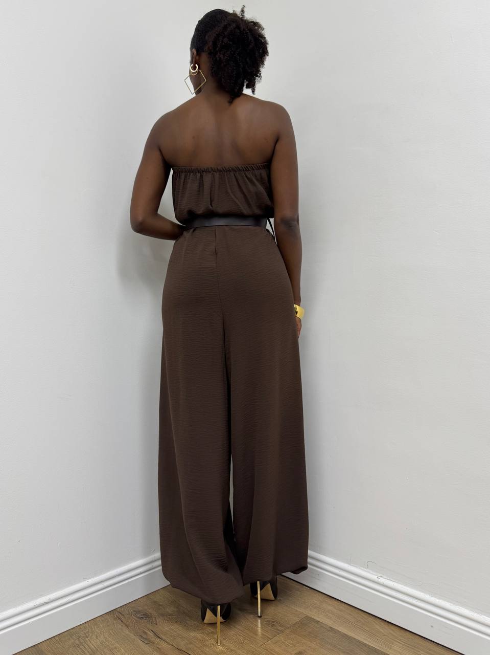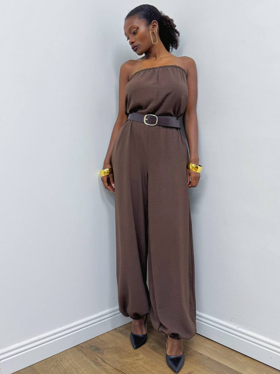 Tuta elasticizzata a fascia a tinta unita con cintura incorporata sul punto vita.